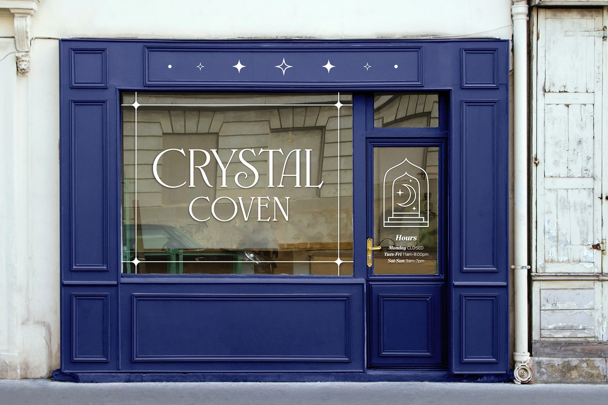 Develop a logo suite, packaging and storefront design for a mystical shop called Crystal Coven. This project was inspired by a brief from the Grow & Glow Club on Instagram.